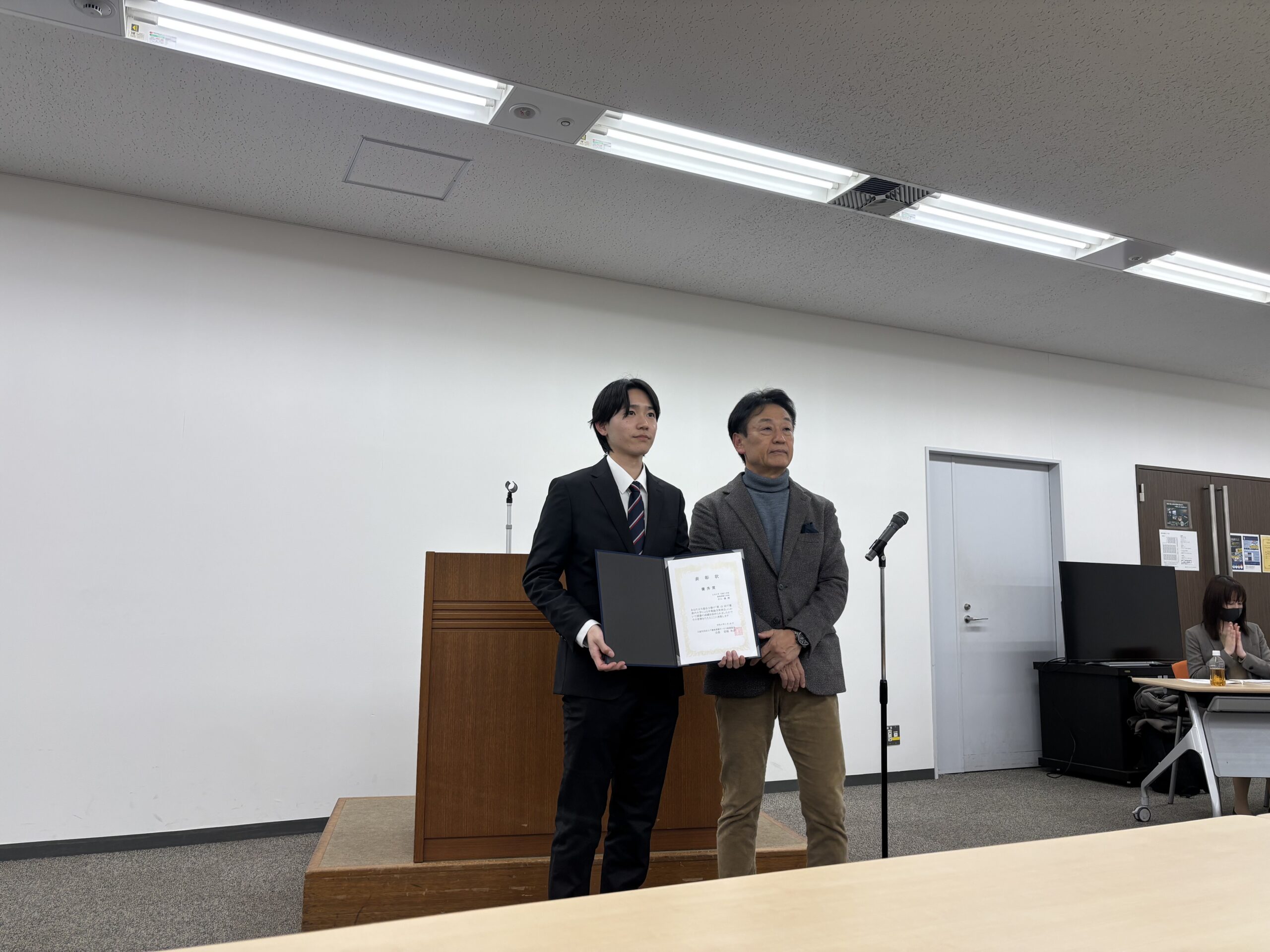 千葉県情報サービス産業協会(CHISA)主催の第15回千葉県内大学による卒業論文発表会がWBGマリブウエストで行われました。この発表会に,数理情報工学科4年の杉山楓君が学内代表で参加し,発表内容が評価され優秀賞を受賞しました。